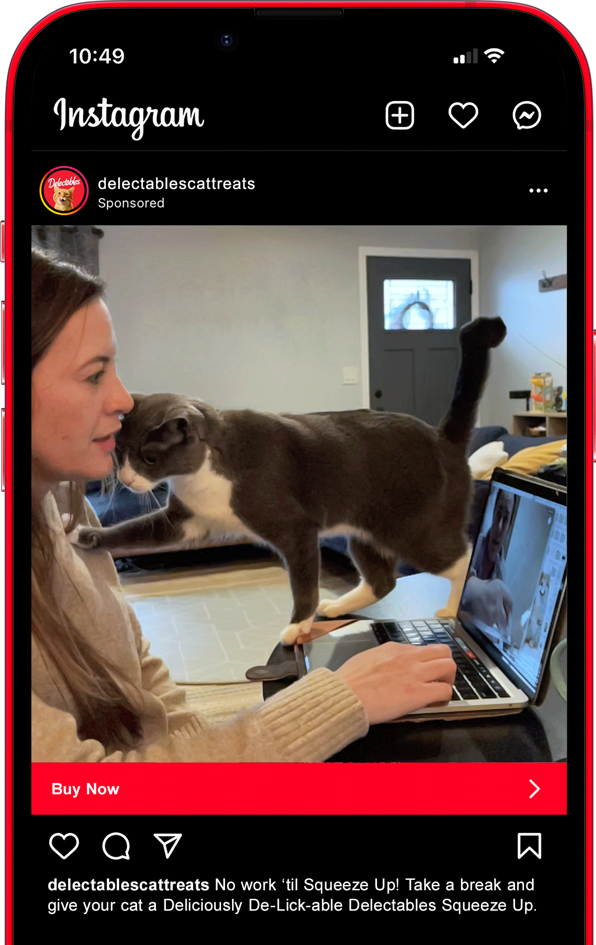 Using real cat owners (and their untrained but very expressive cats), we created UGC-style content that blended naturally into social feeds and felt authentic to pet lovers. The campaign performed so well it grew into two national TV spots, this time starring the pros.